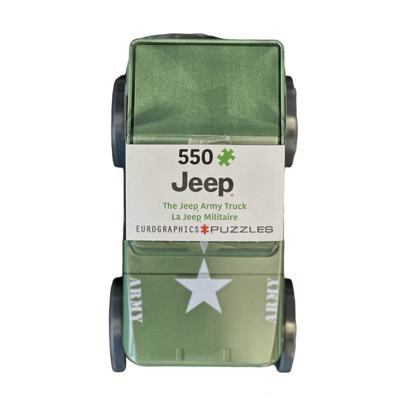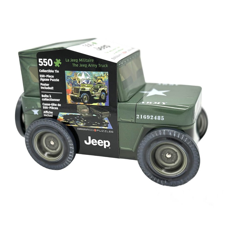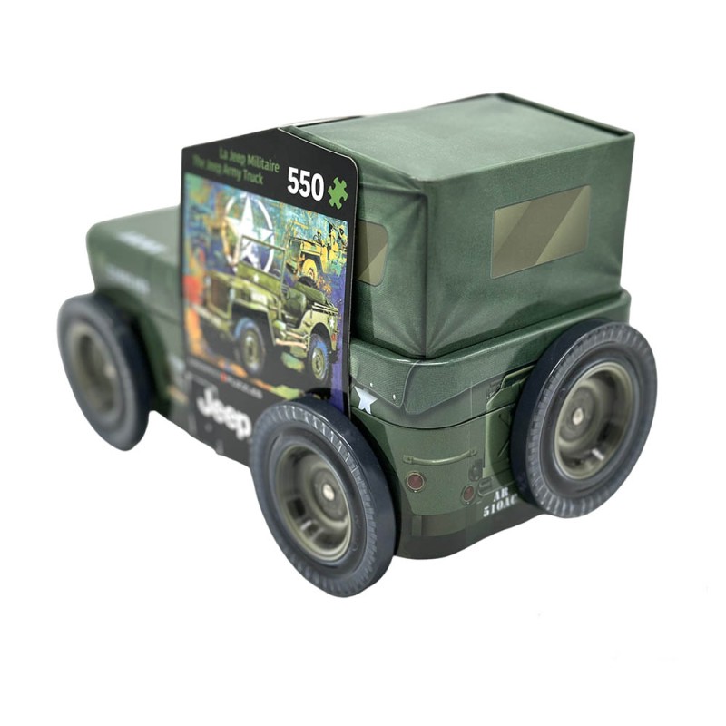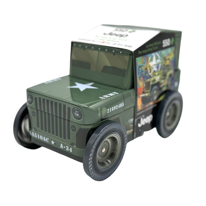 This puzzle is presented in a metal box in the shape of a Jeep Army Truck