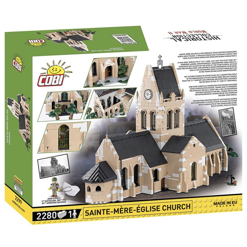For the first time in the history of COBI, they present a set combining the history of World War II and architecture! The church of Notre-Dame-de-l'Assomption in Sainte-Mère-Église (Normandy, France) gained world-wide fame thanks to the events of June 6, 1944, which took place during the D-Day operation. Soldiers of the American 82nd Airborne Division were tasked with gaining control of the town of Sainte-Mère-Église. However, due to an unfortunate landing, one of the soldiers, John Steele, became stuck on the church tower. Suspended high above the ground, the helpless soldier witnessed fierce fighting in the city. He survived, although he was injured himself. To commemorate this event, a figure depicting John Steele was permanently placed on the church tower.
