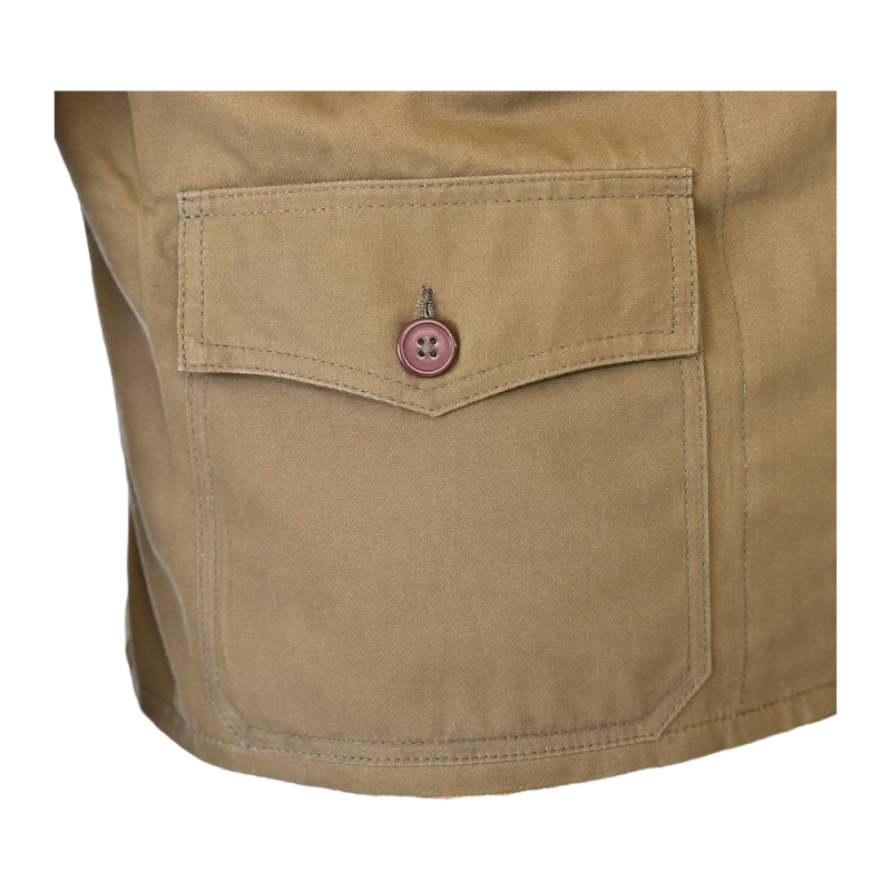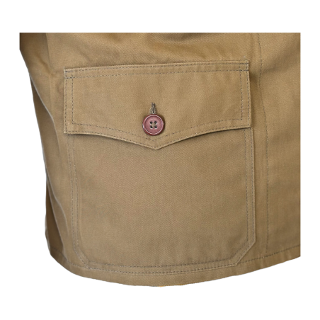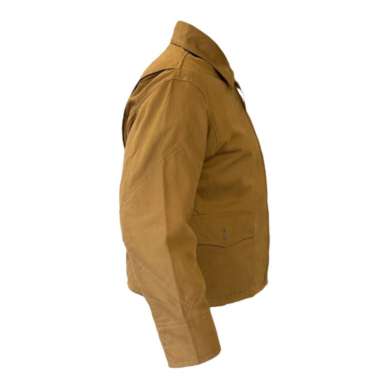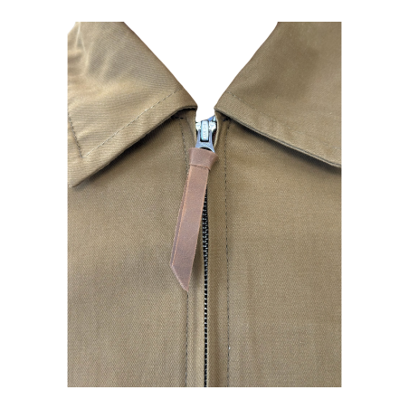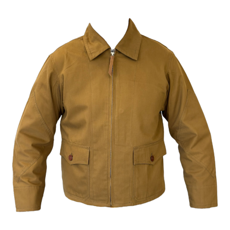 Jacket made from high-quality genuine beige cotton fabric. It features a Talon zipper at the front for secure closure and has precise, durable stitching, identical to that of the period.