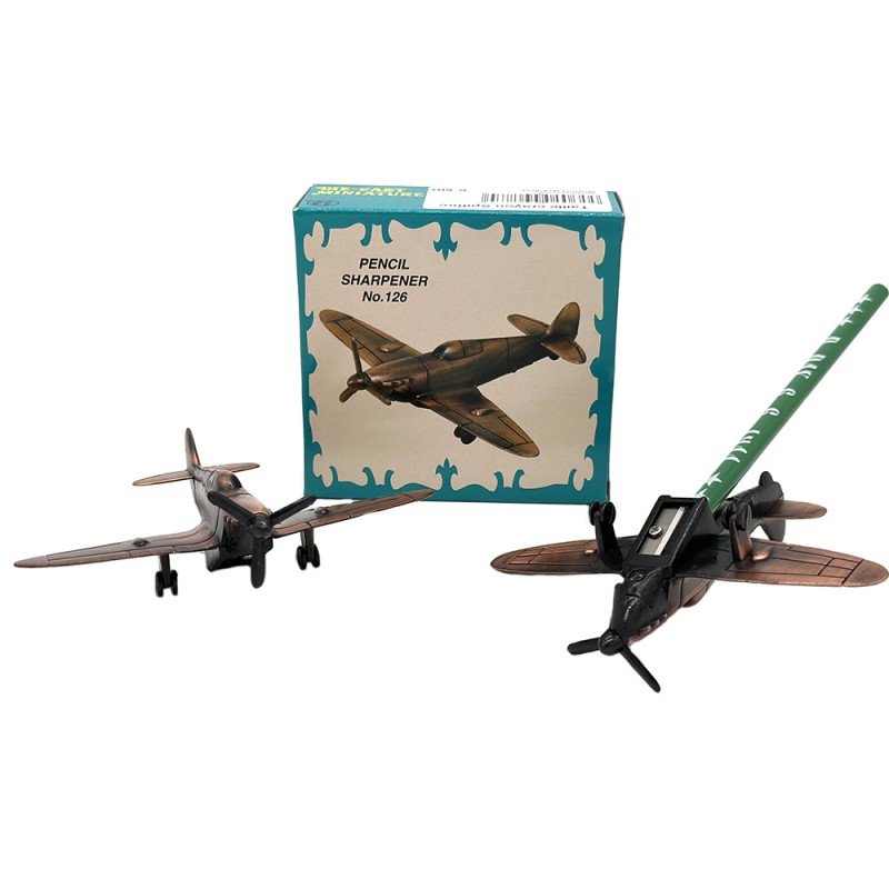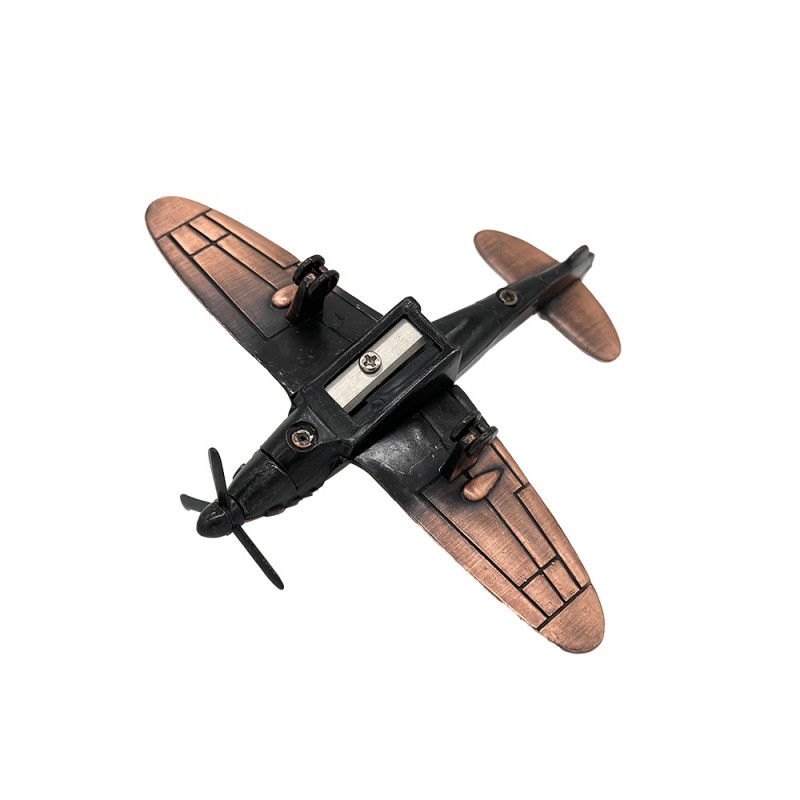 Metal pencil sharpener in the shape of the legendary British Royal Air Force (RAF) fighter plane: The Spitfire