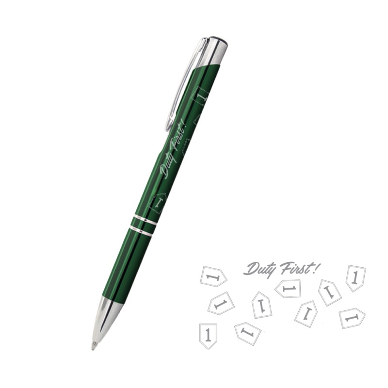 The symbol of the 1st Infantry Division “Big Red One” is repeated along the first part of the pen body. With the division's motto, “Duty First”.