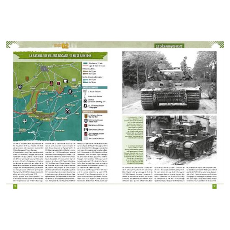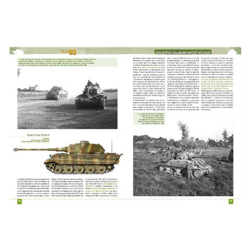 À travers de nombreux exemples d’opérations (dont « Bluecoat », « Cobra » ou « Lüttich »), Franck Segrétain revient avec succès sur l’emploi du char pendant la bataille de Normandie tout en présentant les unités engagées (130. Panzer-Lehr-Division, 2nd Armored Division…) et les généraux impliqués. Ainsi, le char est un outil majeur dans le succès des opérations alliées en Normandie, et son emploi n’est pas uniquement cantonné à des officiers d’exception comme Rose ou Roberts. De leur côté, les Allemands aligneront des Panzer bien souvent supérieurs à leurs adversaires, mais la domination aérienne des Alliés jouera en leur défaveur…