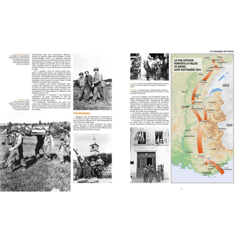 A travers plusieurs centaines de clichés d’époque, le périple de cette division américaine, qui débarque en Provence en août 1944 après une longue campagne en Italie, nous mène jusqu’au coeur de l’Allemagne, où l’unité est la première à entrer dans le camp de concentration de Dachau.