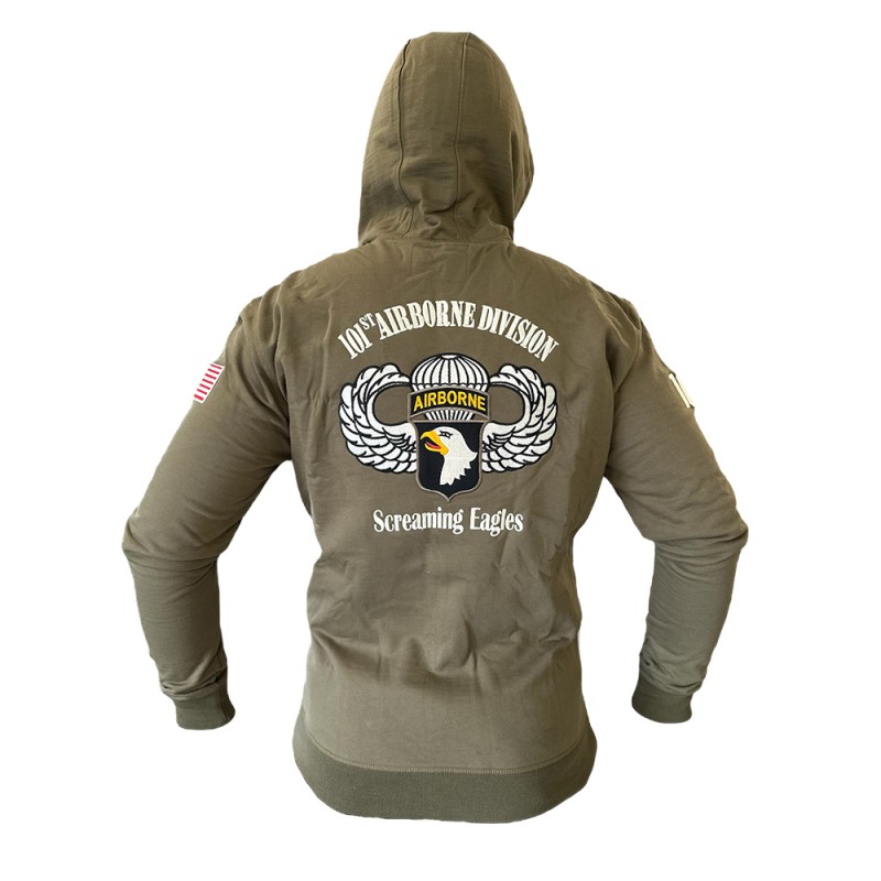 Back: 101st Airborne insignia on a jump wing + embroidery