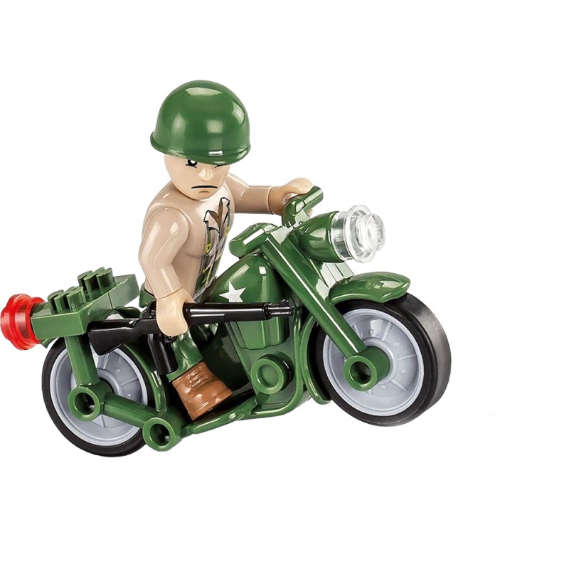 La version en briques est une excellente tour de contrôle aérien pour votre aéroport et un point d'observation pour tout diorama ! Sa hauteur est de 38 cm ! L'ensemble comprend une figurine de soldat américain sur une moto et des accessoires tels que des munitions, une boîte, une pelle, des barils et des sacs de sable. La figurine et les blocs contiennent des impressions de haute qualité qui ne s'effacent pas, même en cas d'utilisation intensive ! Ce grand set est le complément parfait de la collection de briques Company of Heroes 3 !
