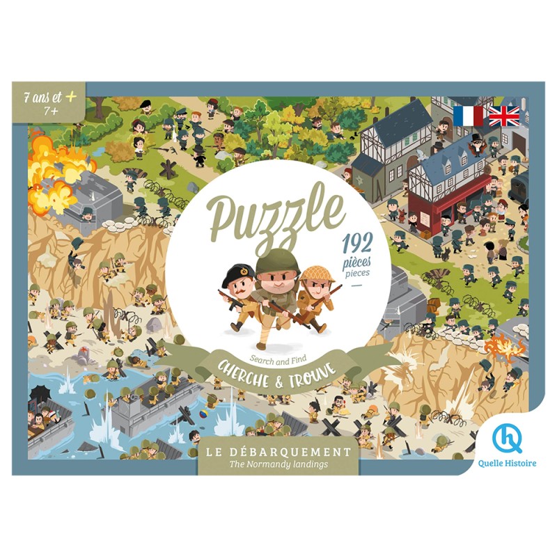 Grâce à ce puzzle "Cherche et Trouve" de 192 pièces plongez au cœur du 6 juin 1944, aux côtés des Alliés sur une plage de Normandie!