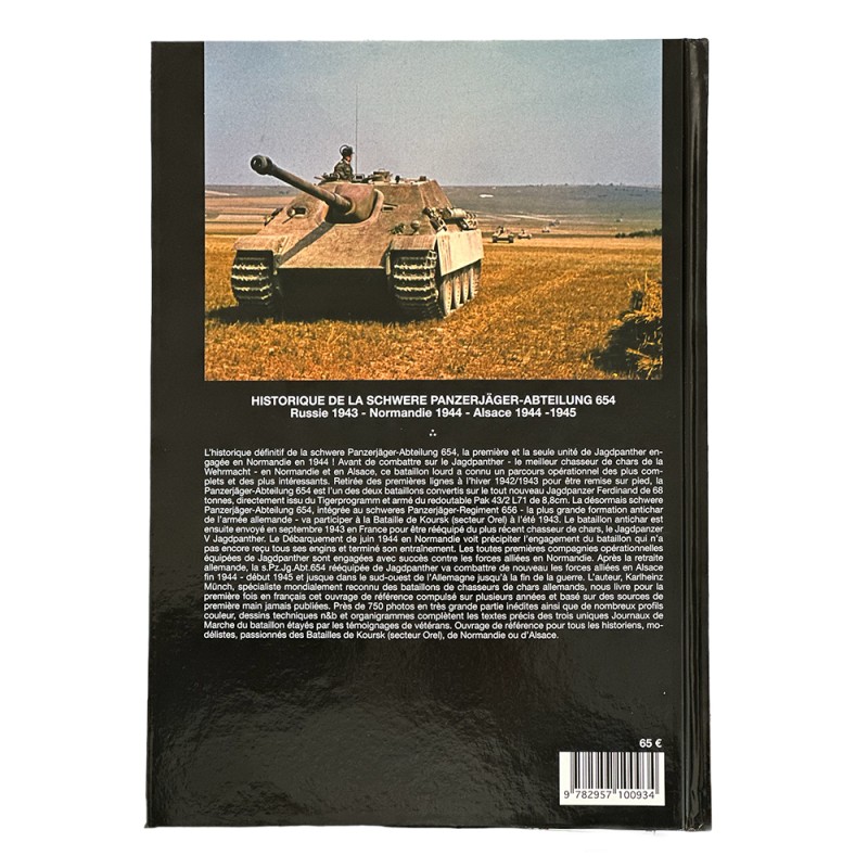 L'historique définitif de la schwere Panzerjäger-Abteilung 654, la première et la seule unité de Jagdpanther engagée en Normandie en 1944 | Avant de combattre sur le Jagdpanther - le meilleur chasseur de chars de la Wehrmacht - en Normandie et en Alsace, ce bataillon lourd a connu un parcours operationnel des plus complets et des plus intéressants. Retirée des premières lignes à l'hiver 1942/1943 pour être remise sur pied, la Panzerjäger-Abteilung 654 est l'un des deux bataillons convertis sur le tout nouveau Jagdpanzer Ferdinand de 68 tonnes, directement issu du Tigerprogramm et armé du redoutable Pak 43/2 L71 de 8,8cm. La désormais schwere Panzerjäger-Abteilung 654, intégrée au schweres Panzerjäger-Regiment 656 - la plus grande formation antichar de l'armée allemande - va participer à la Bataille de Koursk (secteur Orel) à l'été 1943. Le bataillon antichar est ensuite envoyé en septembre 1943 en France pour être rééquipé du plus récent chasseur de chars, le Jagdpanzer V Jagdpanther. Le Débarquement de juin 1944 en Normandie voit précipiter l'engagement du bataillon qui n'a pas encore reçu tous ses engins et terminé son entraînement. Les toutes premières compagnies opérationnelles équipées de Jagdpanther sont engagées avec succes contre les forces alliées en Normandie. Apres la retraite allemande, la s.Pz.Jg.Abt.654 rééquipée de Jagdpanther va combattre de nouveau les forces alliees en Alsace fin 1944 - début 1945 et jusque dans le sud-ouest de l'Allemagne jusqu'à la fin de la guerre.