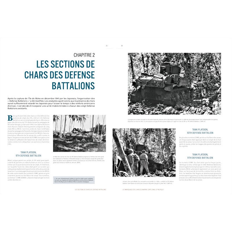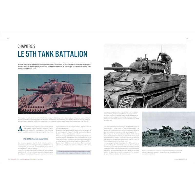 Les marquages appliqués sur les chars du Corps des Marines dans le Pacifique sont source de beaucoup d’intérêt chez les passionnés de blindés et surtout chez les maquettistes qui y voient une diversité et une originalité presque sans fin. Cependant, à part quelques références éparses dans des livres qui traitent de thématiques plus larges, il n’existe pas d’ouvrages spécialisés sur le sujet. Cette publication détaille et explique pour la première fois les marquages utilisés sur les chars de l’USMC entre 1942 et 1945. Plutôt qu’organiser le livre de façon linéaire (chronologique), chaque chapitre sera consacré à une unité. Ceux-ci seront divisés par bataille où seront détaillées les marques de l’unité jusqu’au niveau de la section. De nombreuses photographies et profils couleurs enrichissent le contenu.