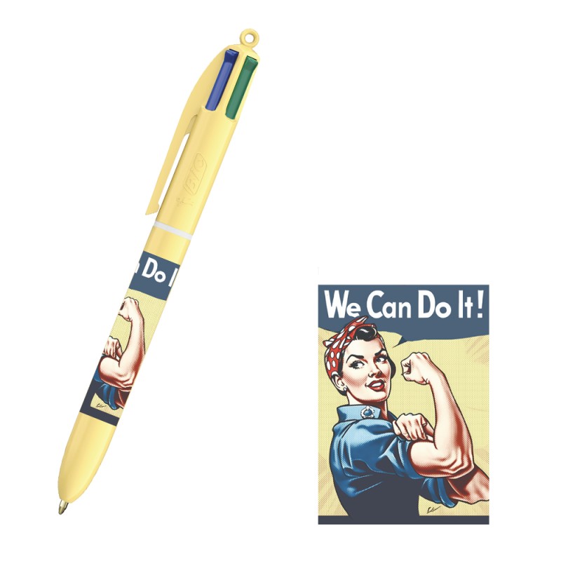 5 stylos-bille rétractables BIC 4 Couleurs pointe moyenne (1,0 mm), corps pastel avec Affiches de la Seconde Guerre mondiale