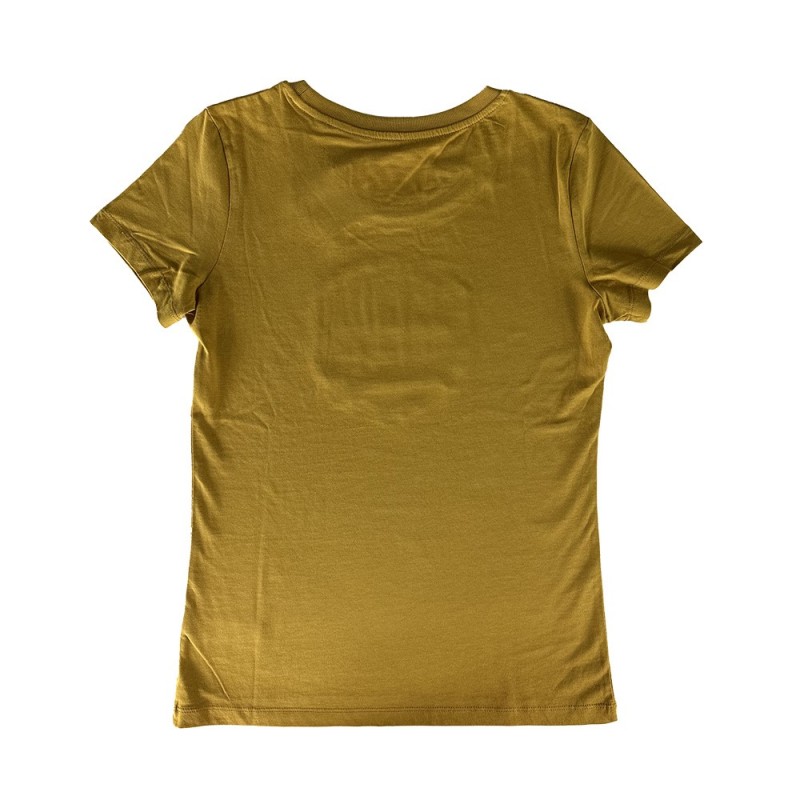 T-shirt homme couleur ocre avec blason bleu sur le devant